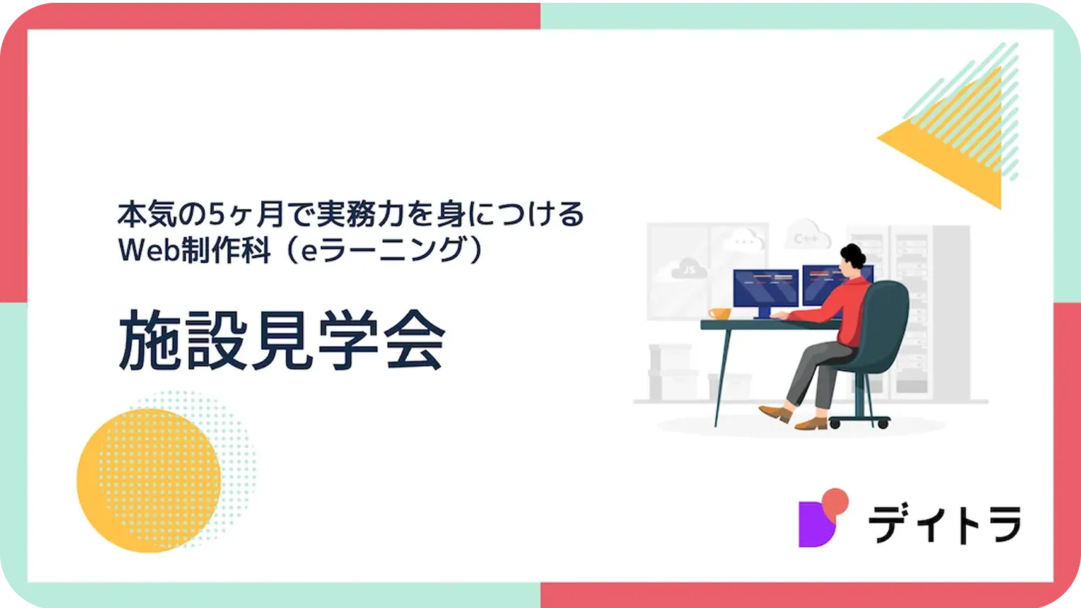 厚生労働省の求職者支援訓練の実施機関として認定され、デイトラのカリキュラムをベースとしたWeb制作科・Webデザイン科・Webアプリケーション科の3学科を開講。